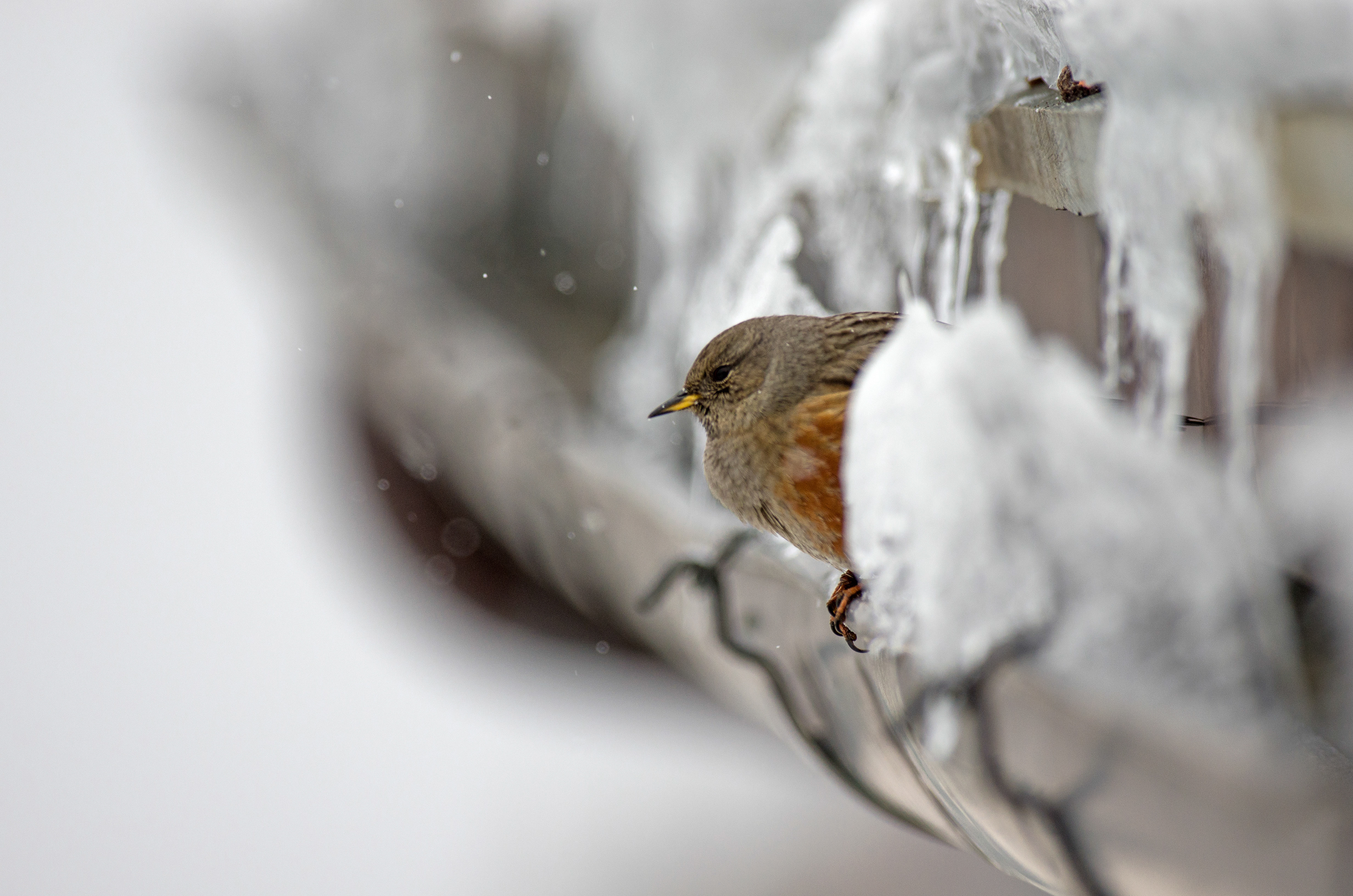 Birds under the snow in the alps