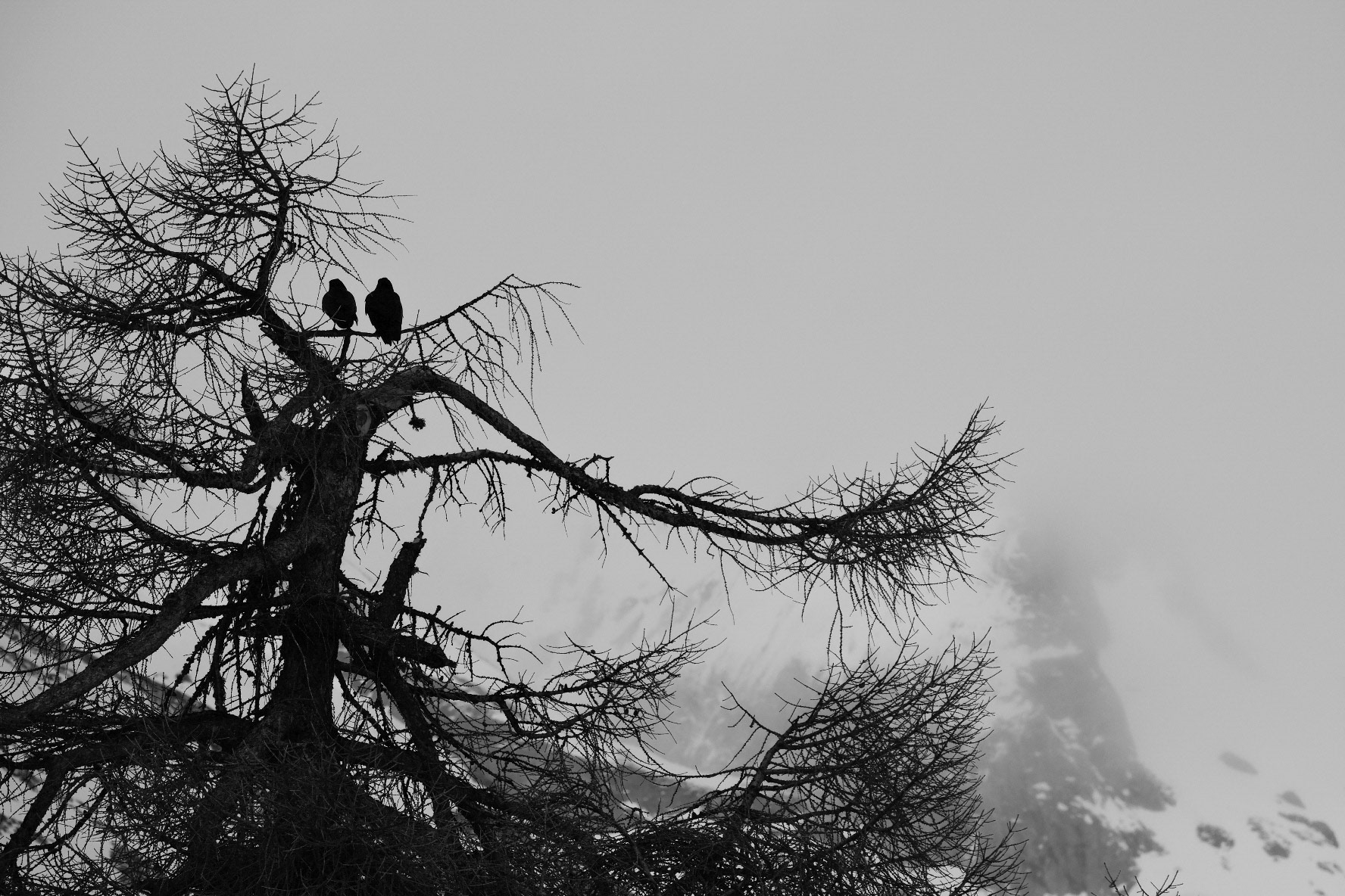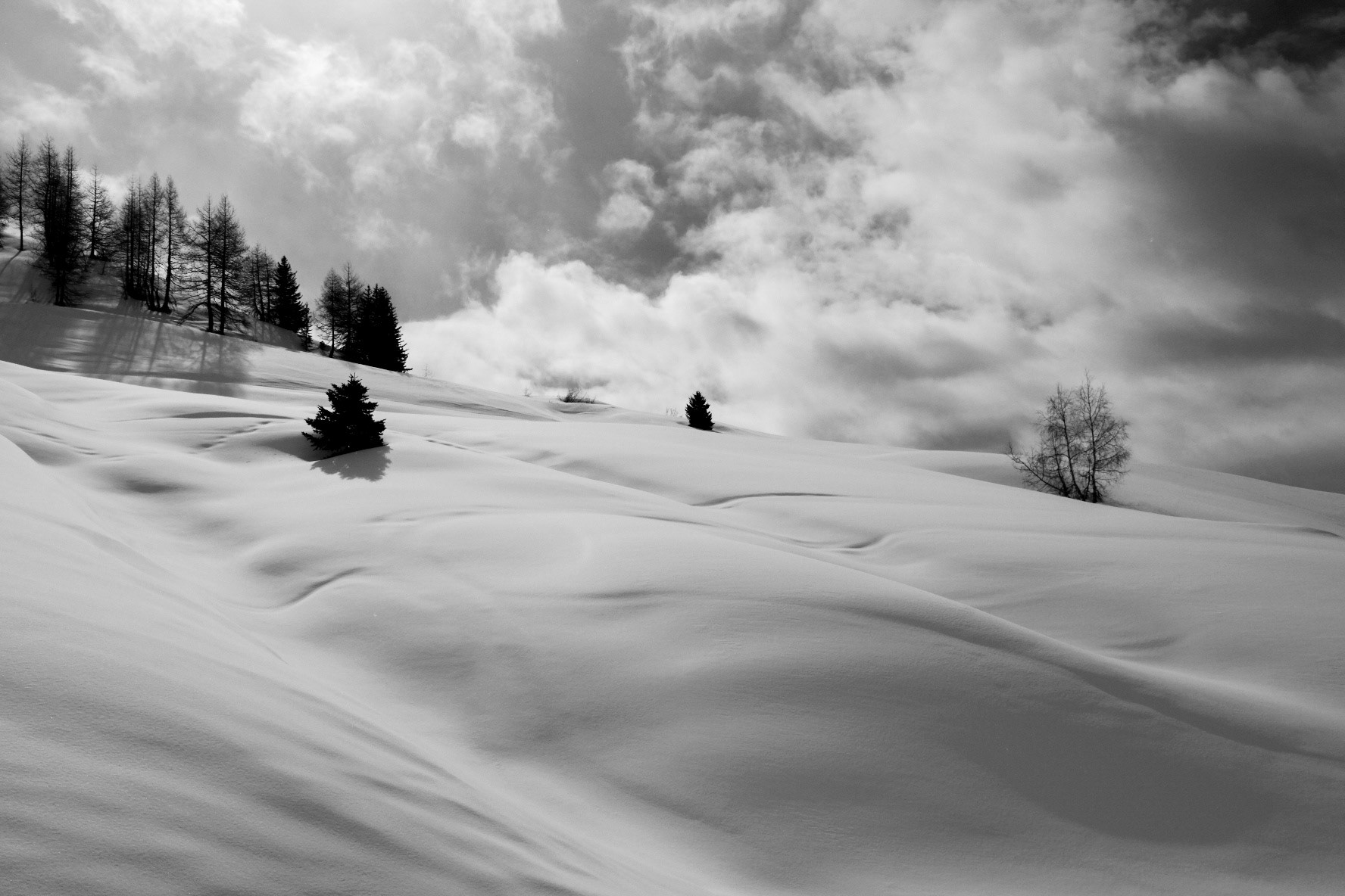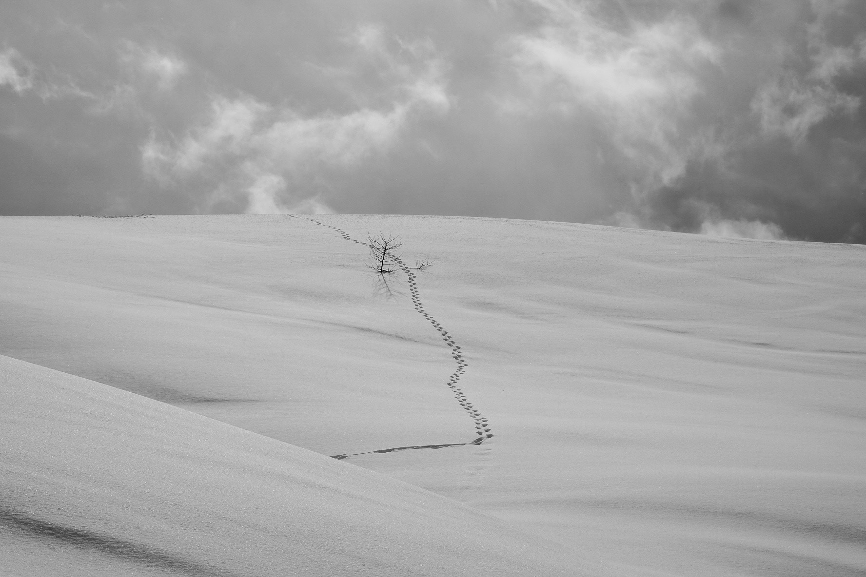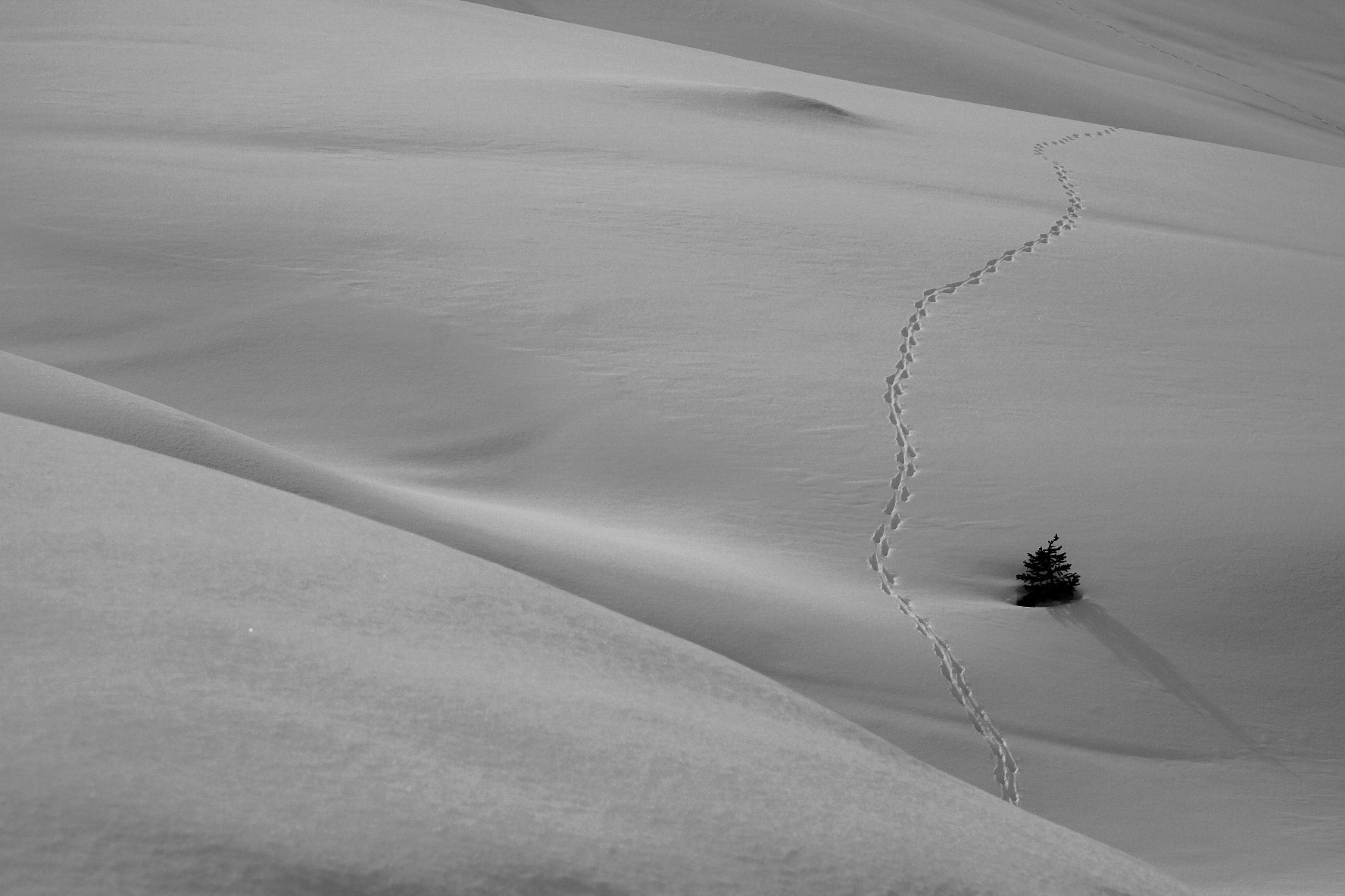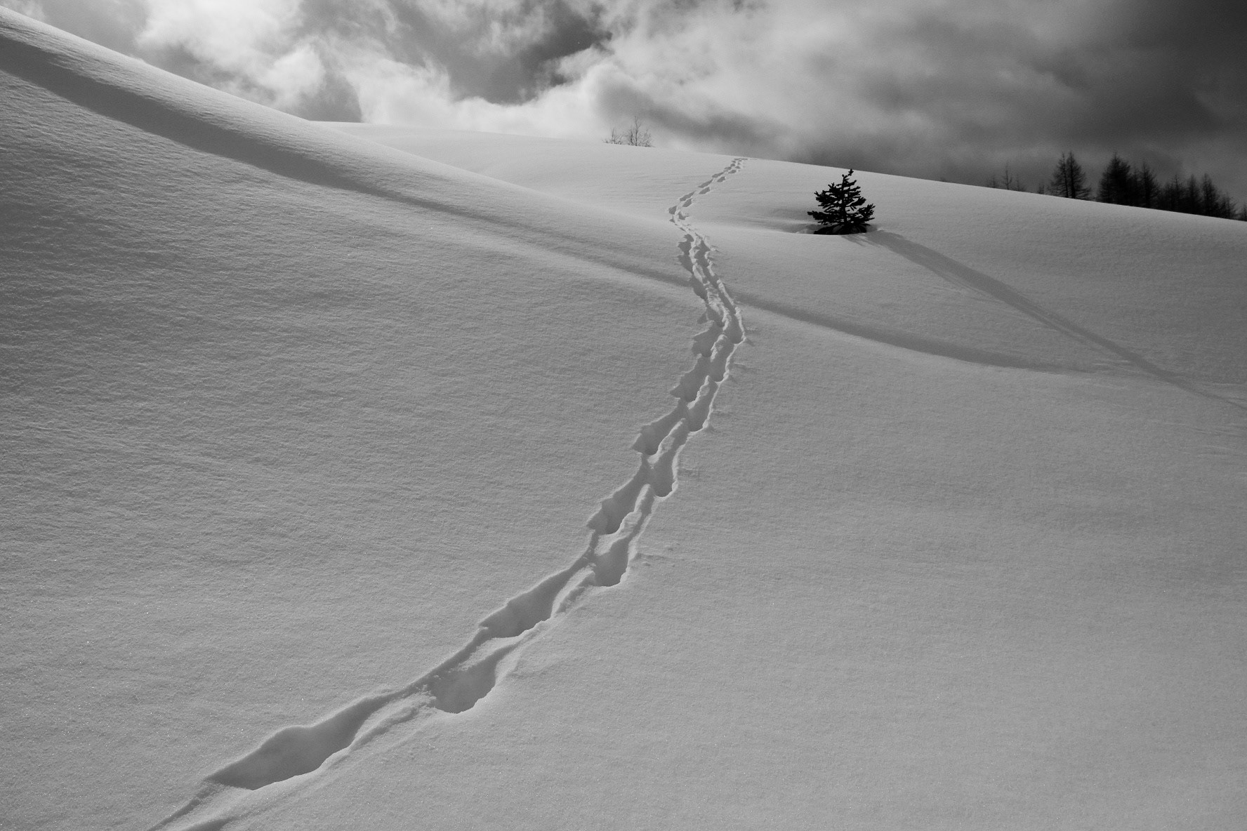 Discover footprints in the snow during a hike in the high mountain